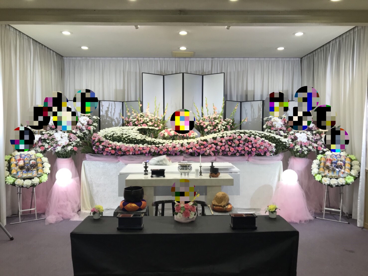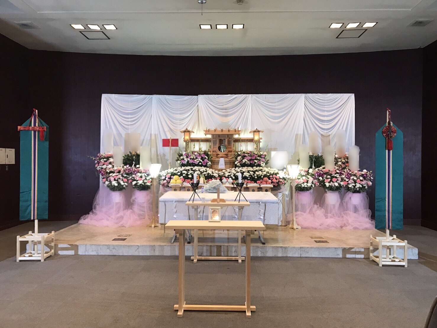 先日執り行いました神式の花祭壇です。ピンクを基調とした綺麗な花祭壇でした。花祭壇もお客様とご相談の上、出来る限りご希望に添えるようご案内させて頂きます。