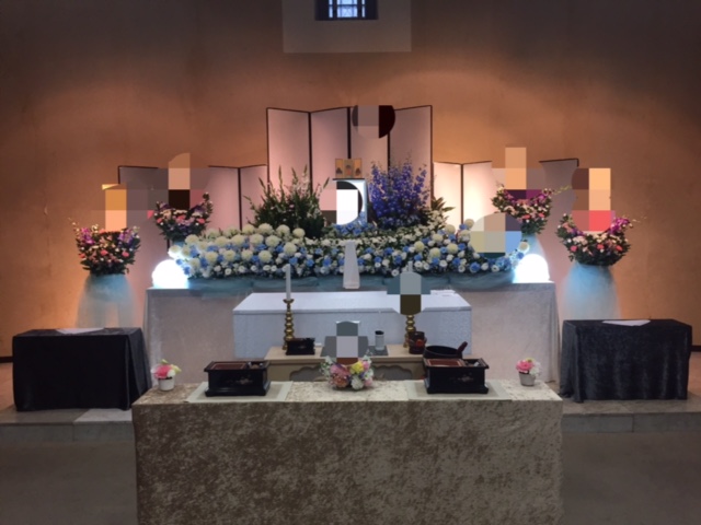 本日紹介いたします祭壇はデルフィニウムとダリアの祭壇になります。
